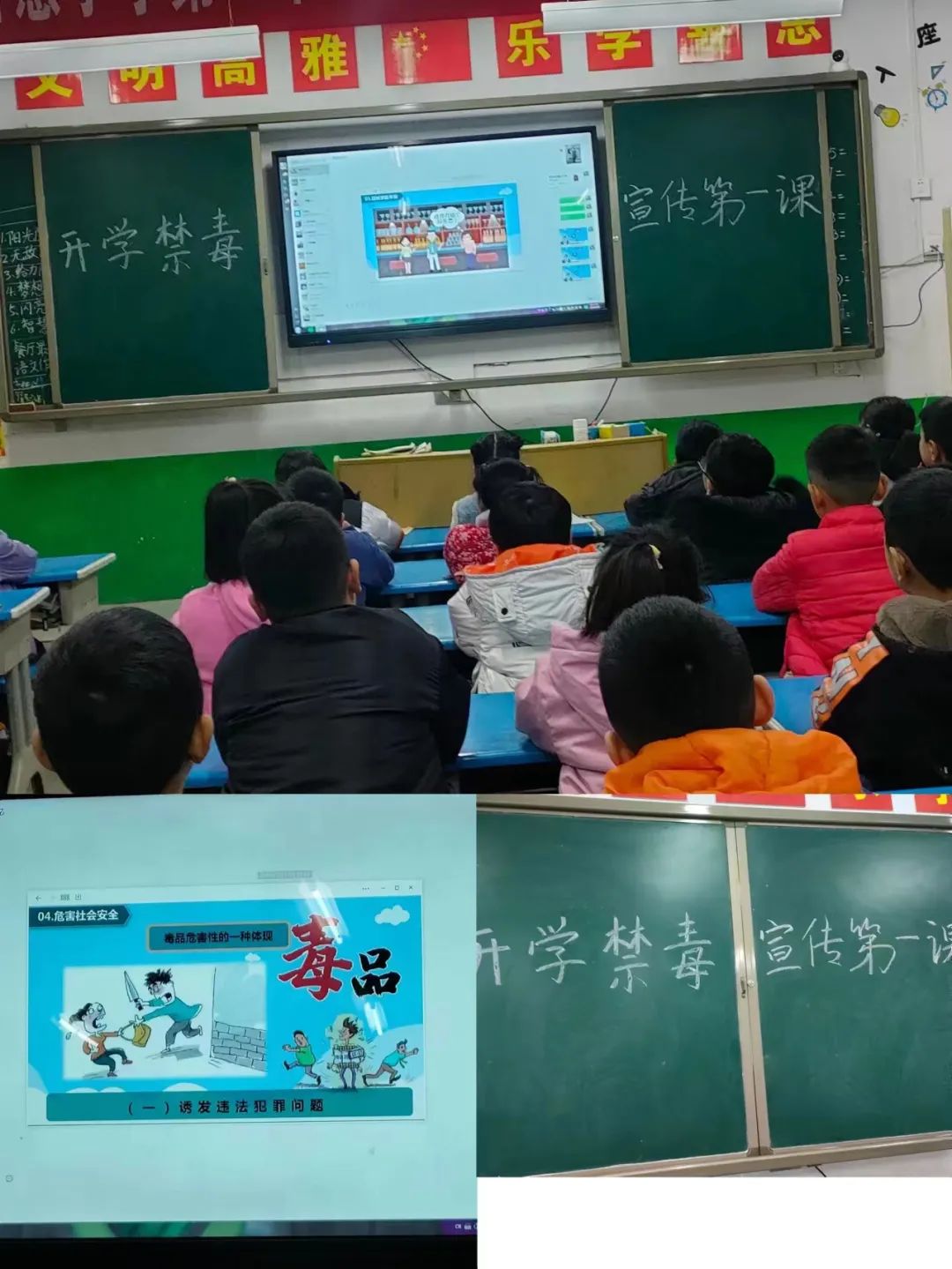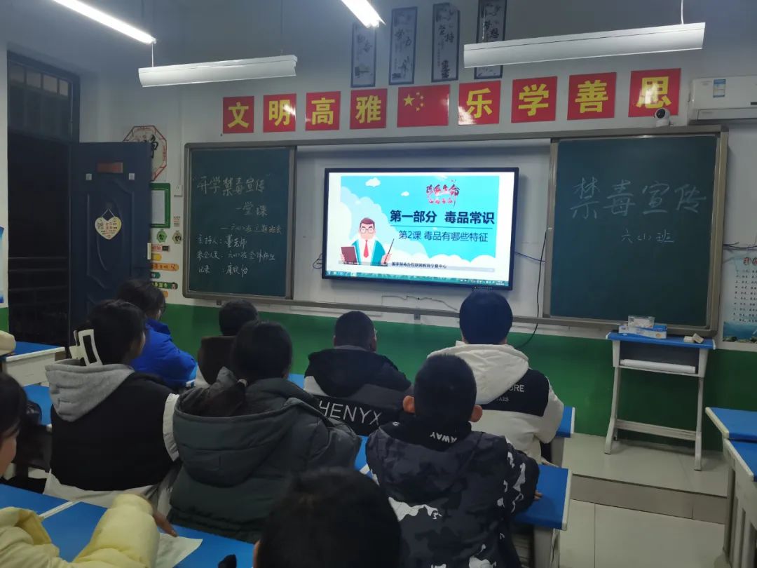 活动中,班主任结合视频材料进行讲解,从什么是毒品、毒品的种类,结合当下合成毒品的滥用情况,告诫同学们要有警觉戒备意识,不要轻易接受陌生人的食物,出门在外不吃、喝其陌生人的烟酒、饮料、糖果等,远离歌舞娱乐、宾旅馆服务等涉毒高危场所及网吧、电子游戏室等娱乐场所,谨慎交友,杜绝与社会上的闲散不良青少年交往,放弃尝试、虚荣、侥幸、寻找刺激等不良心理,谨防沾染毒品,杜绝毒品侵害。