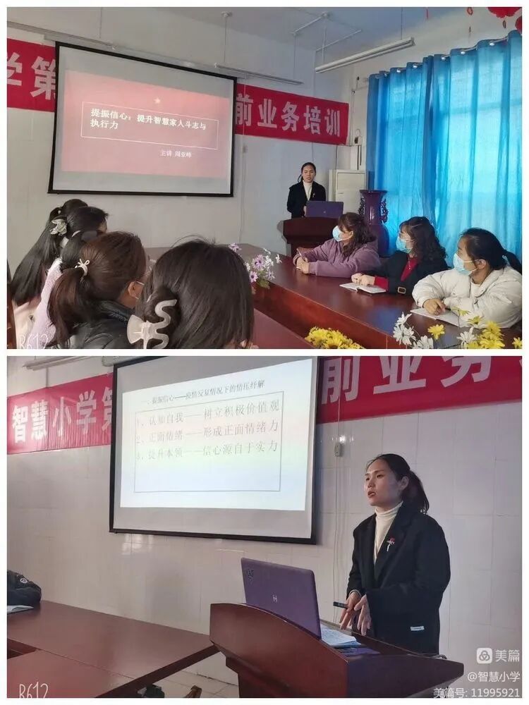 绿杨烟外晓寒轻,红杏枝头春意闹。3月20日上午,许昌智慧小学教师齐聚一堂,共同聆听了“提振信心:提升智慧家人斗志与执行力”的专题培训讲座,本次培训由学校业务校长周亚峰倾情讲授。
